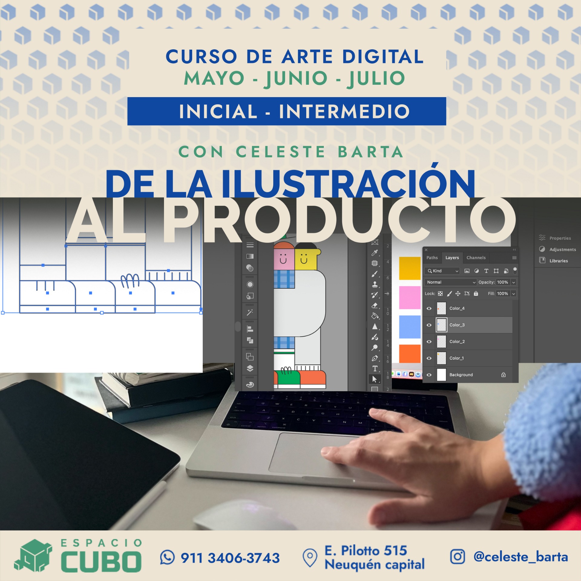 En este curso vamos a ver desde cero programas digitales como Procreate, Photoshop e Ilustrador. No se requiere experiencia previa.